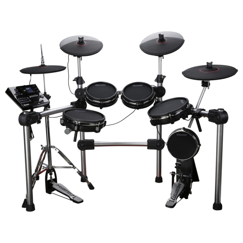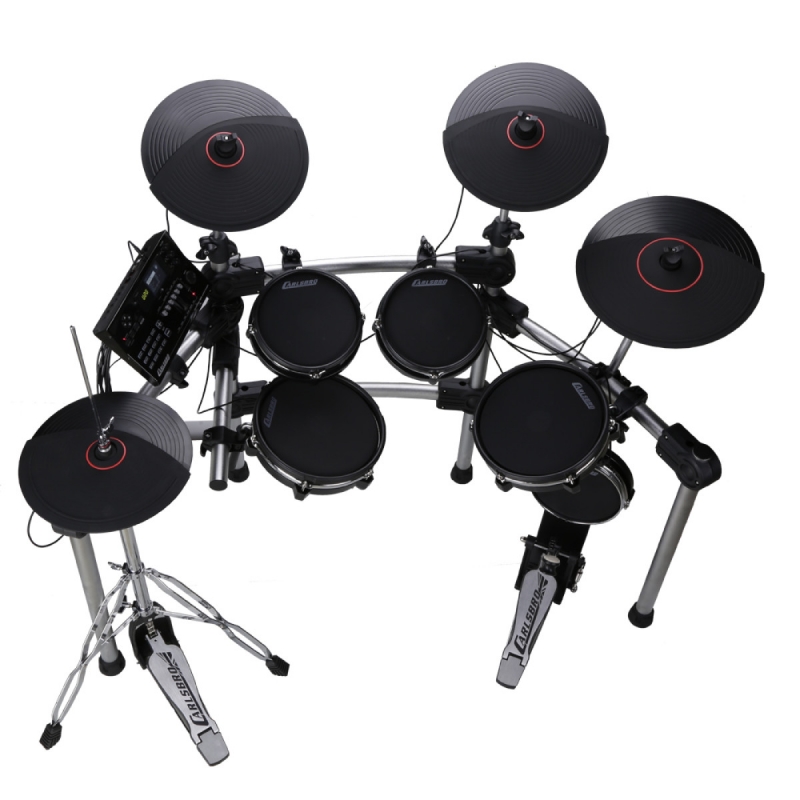 Das 9-teilige E-Mesh-Head-Drum-Kit CSD601 von Carlsbro besteht aus dem neuen Commander 600-Soundmodul, fünf Mesh-Drum-Pads (1 x 8-Zoll-Basspad mit Kickpedal, 1 x 10-Zoll-Dual-Zone-Snare, 2 x 8-Zoll-Dual-Zone-Rack) Toms und 1 x 10 "Dual Zone Floor Tom), vier Becken (2x 12" Dual Zone Crash Becken mit Choke, 1 x 14 "Dreizonen Ride Becken mit Choke und 1 x 12" Hi-Hat Becken mit offener Hardware Hi-Hat-Stand schließen.