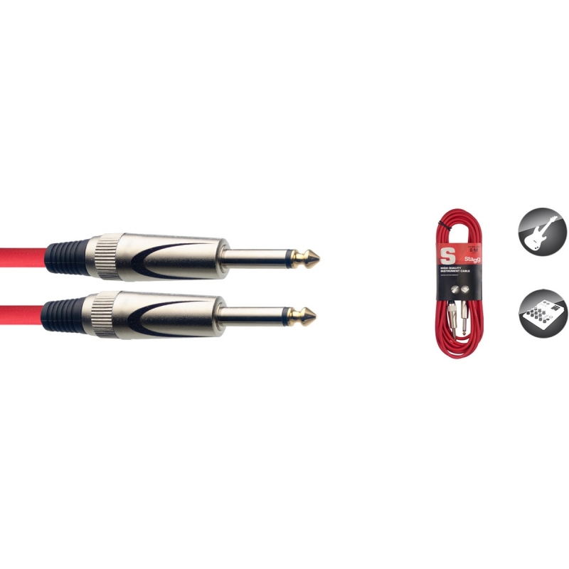 Instrumentenkabel, Klinke/Klinke (M/M), 6 m, robuste Stecker, Rot, S-Serie