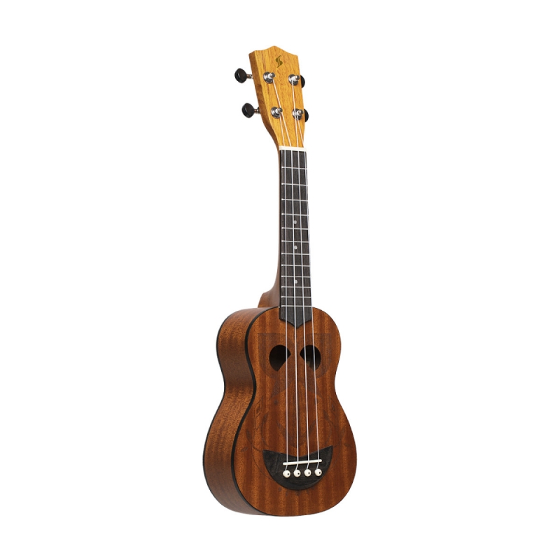 Stagg Tiki Serie Sopran Ukulele mit Sapele-Decke und Eh-Finish. Inklusive schwarzem Nylon-Gigbag.