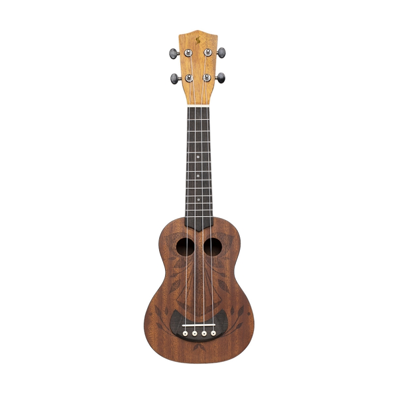 Stagg Tiki Serie Sopran Ukulele mit Sapele-Decke und Oh-Finish. Inklusive schwarzem Nylon-Gigbag.